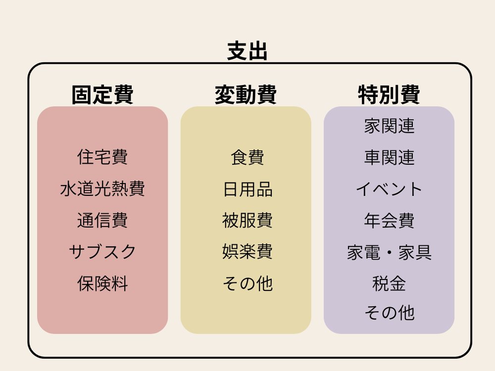 ① 固定費/② 変動費/③ 特別費 の3階層で考えると失敗しにくいです。